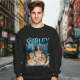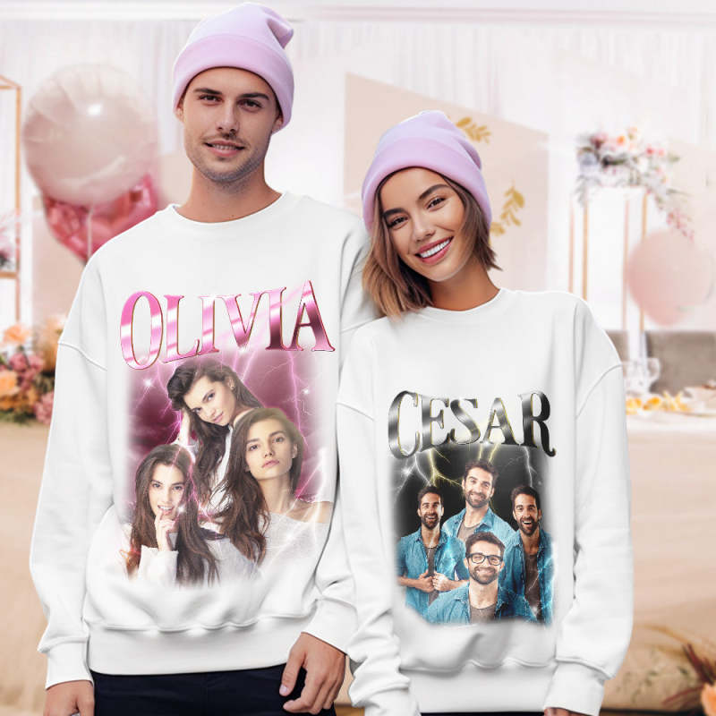 カスタ厶写真と文字スウェット - オリジナル写真と名入れ可能な復古的な稲妻柄スウェットギフト
