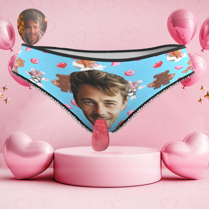 カスタム顔ボクサーパンツ-顔の写真入れ可能なオリジナルマグネットフォト下着ショーツバレンタインギフト-可愛い熊