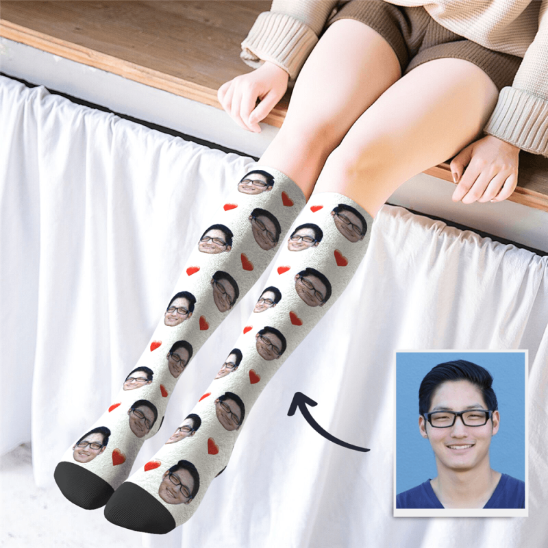 カスタムハイソックスソックス-写真入り可能なオリジナル靴下オーバーニソックスハートマーク