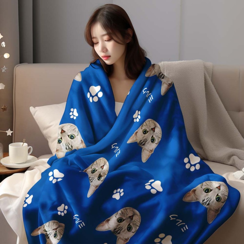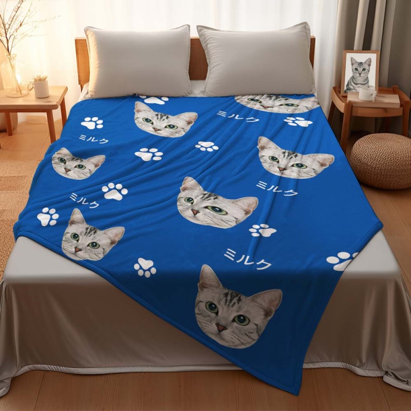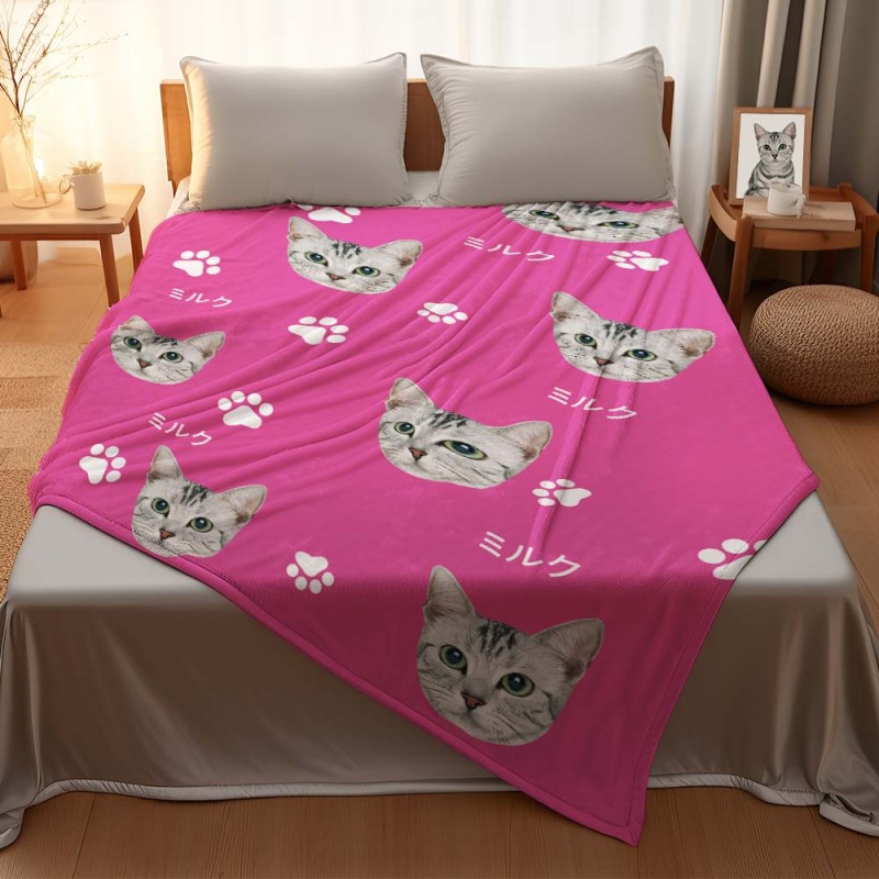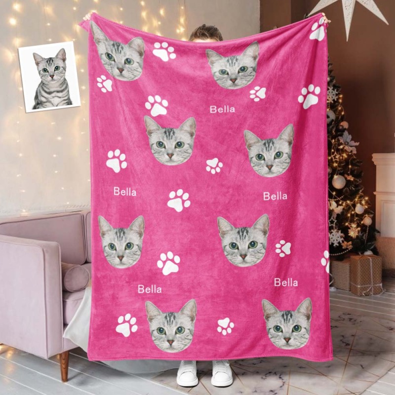 カスタムフォトブランケット - 可愛いペットの写真と名入れ可能なクリスマスフリース毛布ひざかけギフト - 可愛い爪あと