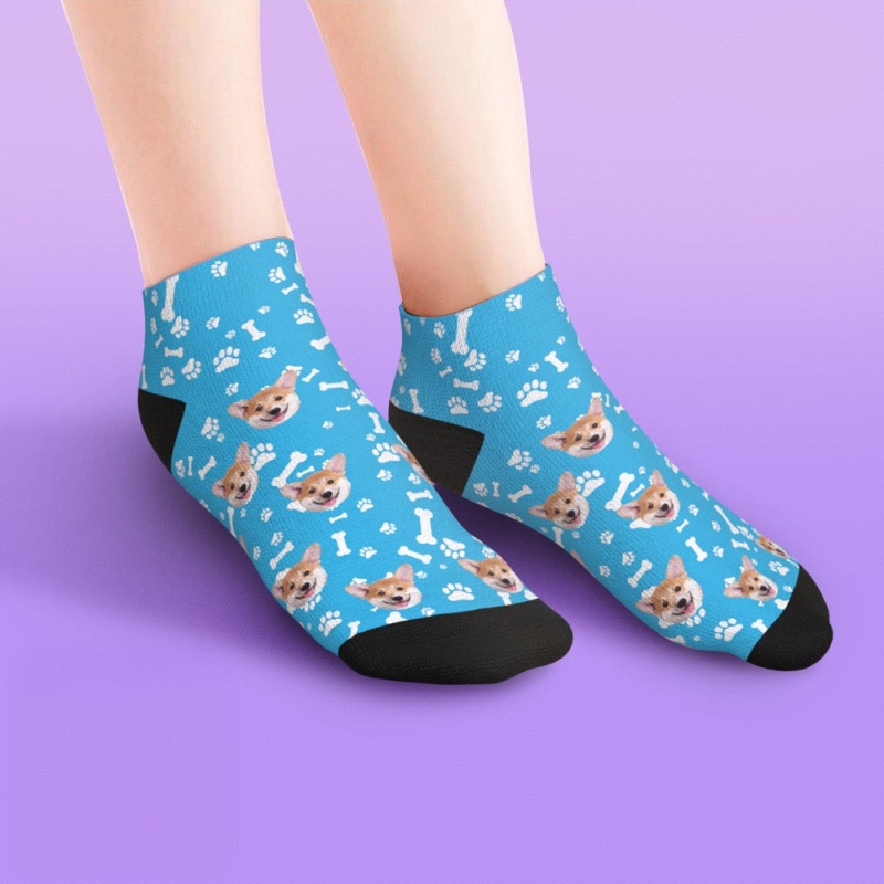 カスタムペットの写真入れ可能なくるぶしソックス-犬