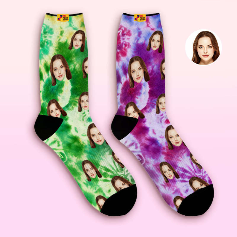 カスタム通気性フェイスソックス - 写真入れ可能なオリジナル靴下 - 絞染