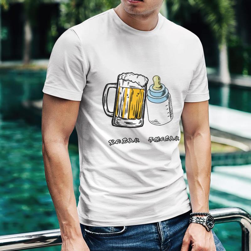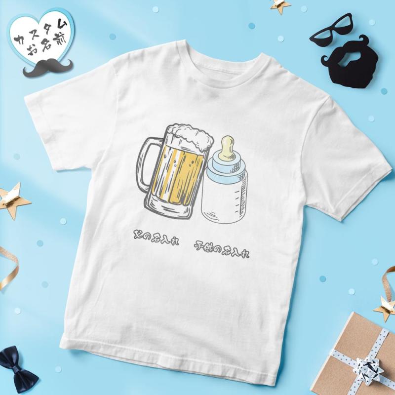 カスタム名前Tシャツ - テキスト入れ可能なT-SHIRTギフト父の日プレゼント - ビールジョッキと哺乳瓶かんぱい