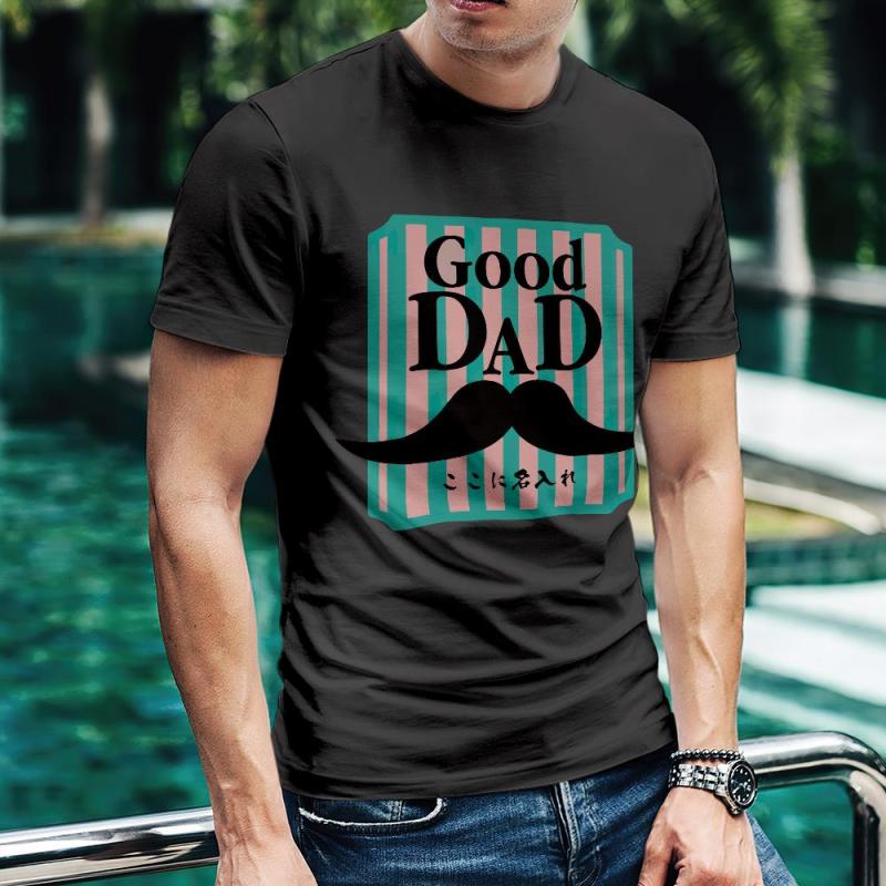カスタム名前Tシャツ - テキスト入れ可能なT-SHIRTギフト父の日プレゼント - 髭柄GOOD DAD