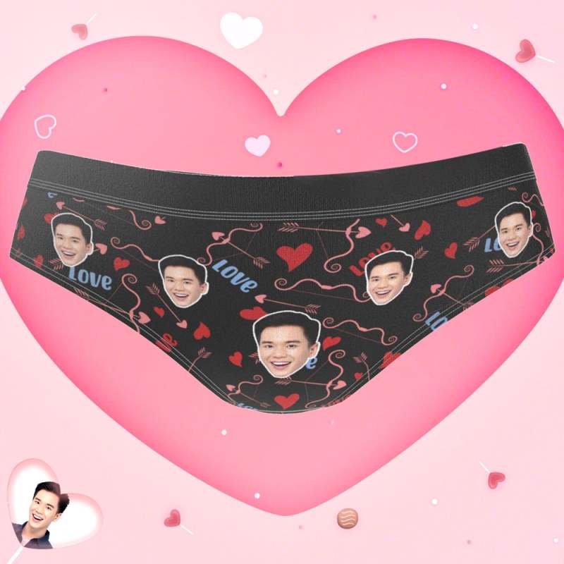 カスタムフォトパンティー-写真入れ名入れ可能なキューピッドの矢柄のオリジナルパンツ彼女や妻へのバレンタインギフト