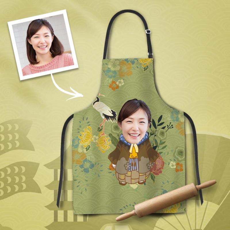 カスタムフォトエプロン-写真入れ可能なキッチン首掛け式エプロンギフト-和柄着物