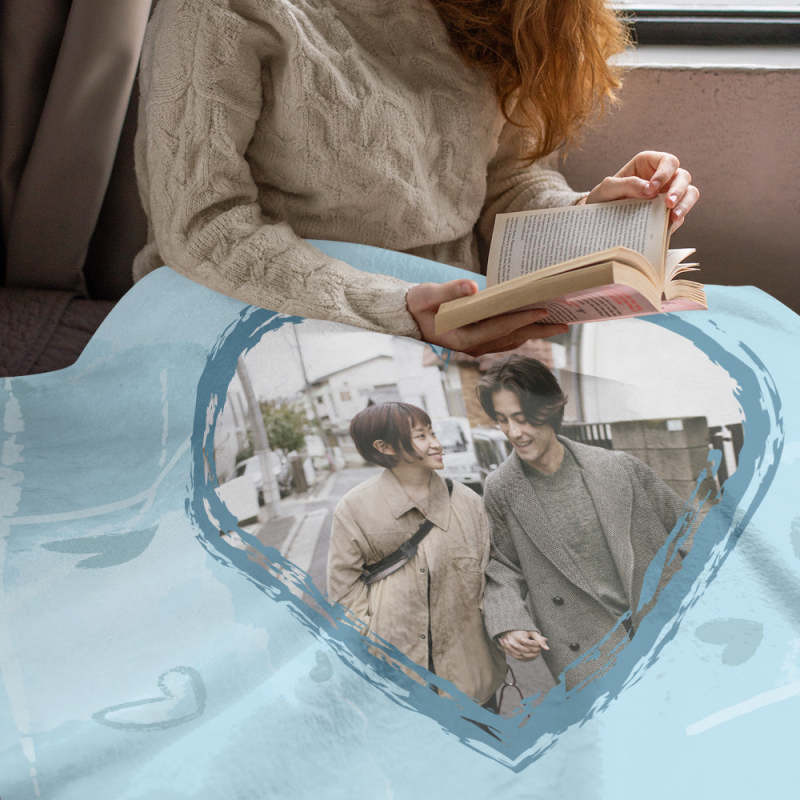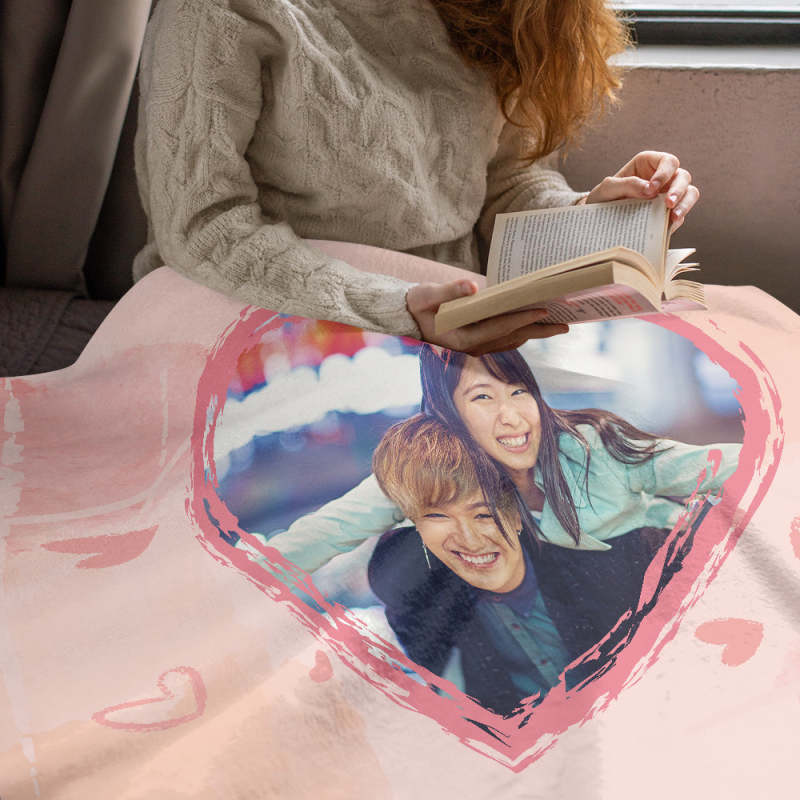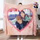 カスタムフォトブランケット-カップルの写真入れ可能なハート柄のフリース毛布恋人へのバレンタインひざかけギフト