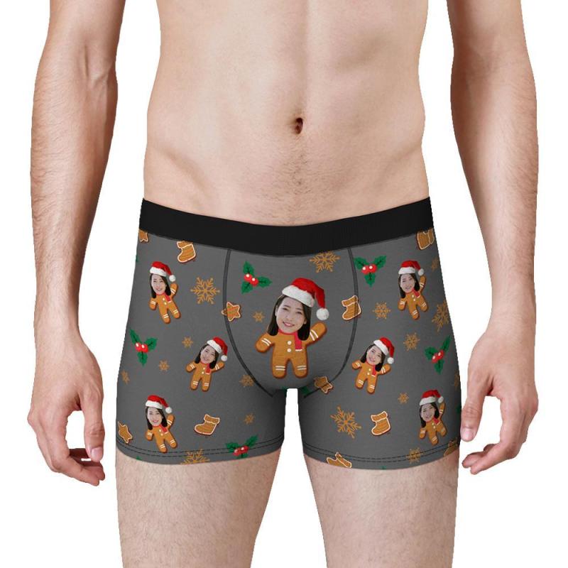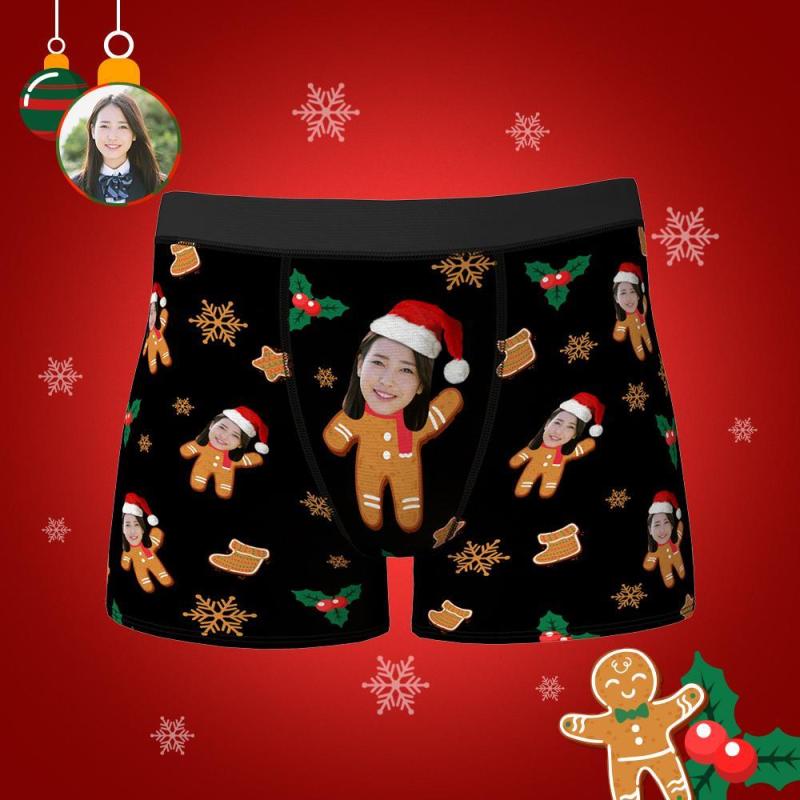 カスタム男性ボクサー-パーソナライズされた下着-写真入れ可能なジンジャーブレッド人柄ボクサークリスマスのギフト