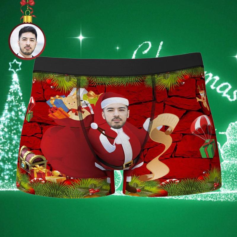 カスタムフォトボクサーパンツ-写真入れ可能なサンタ柄のクリスマス下着ギフト