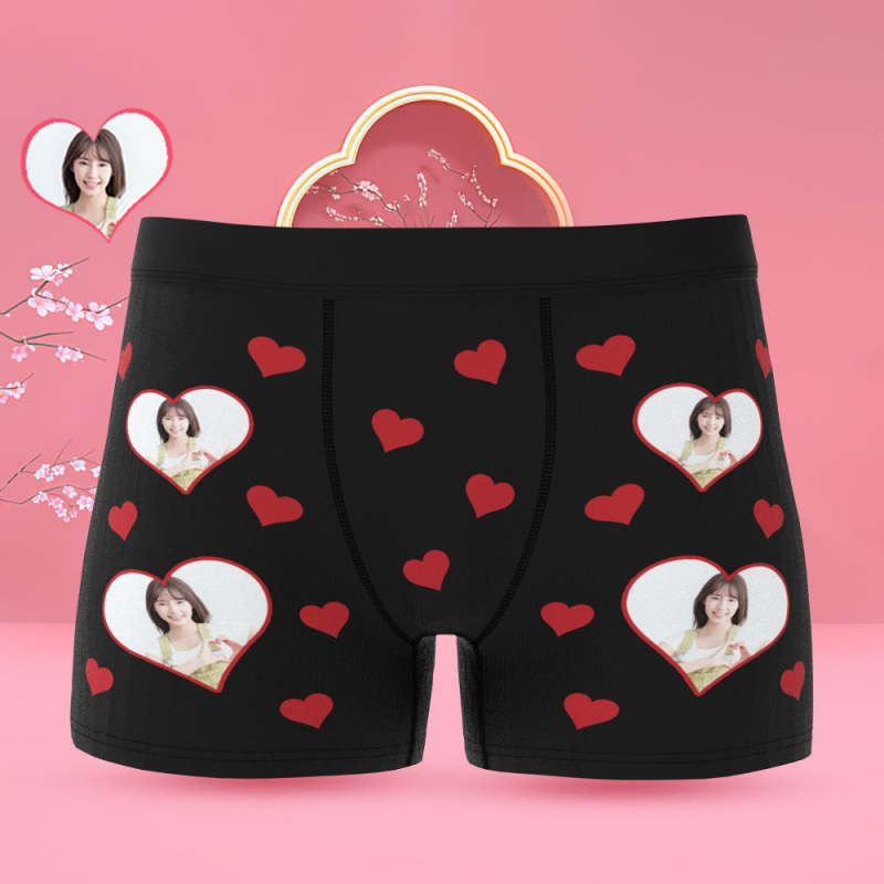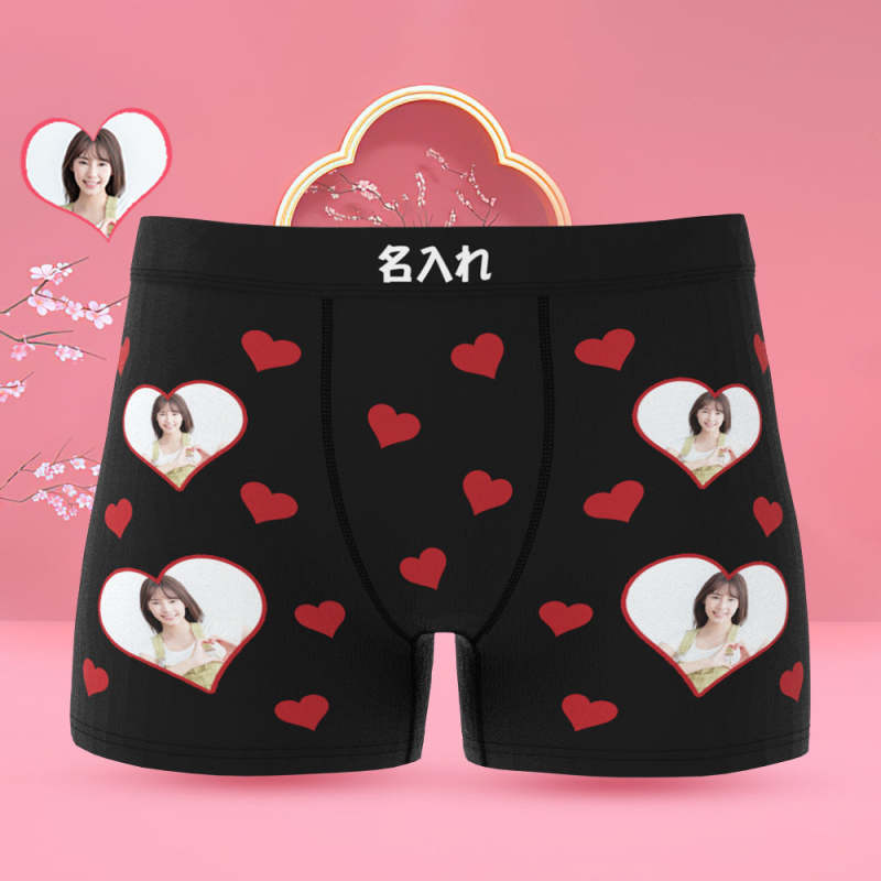 カスタム写真ボクサーパンツ-写真入れ可能なオリジナルフォト下着ショーツギフト-ハート形の写真