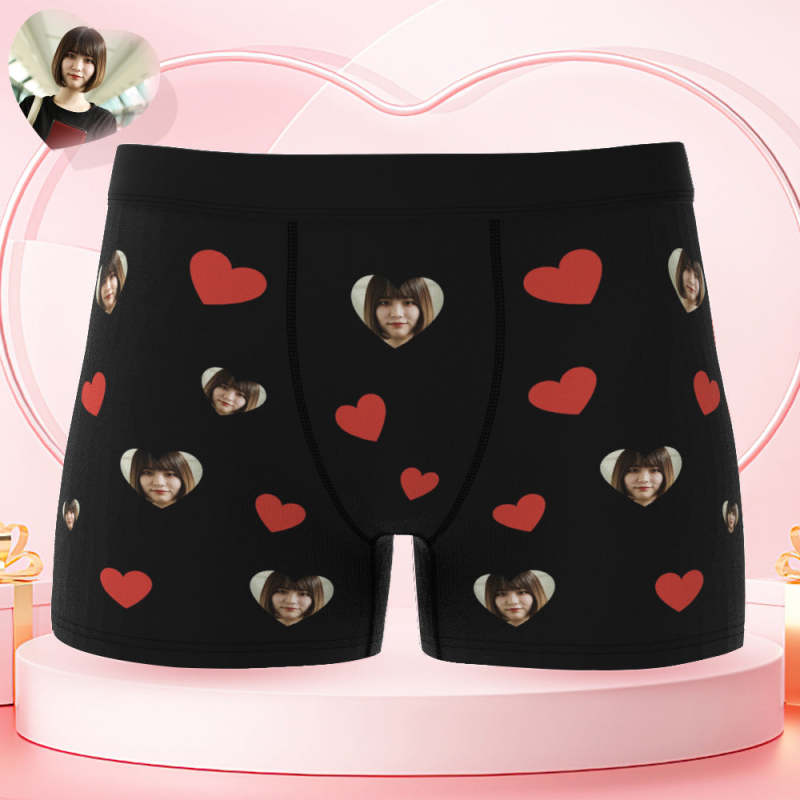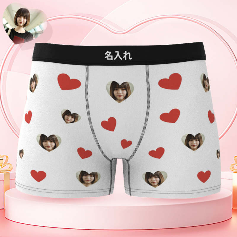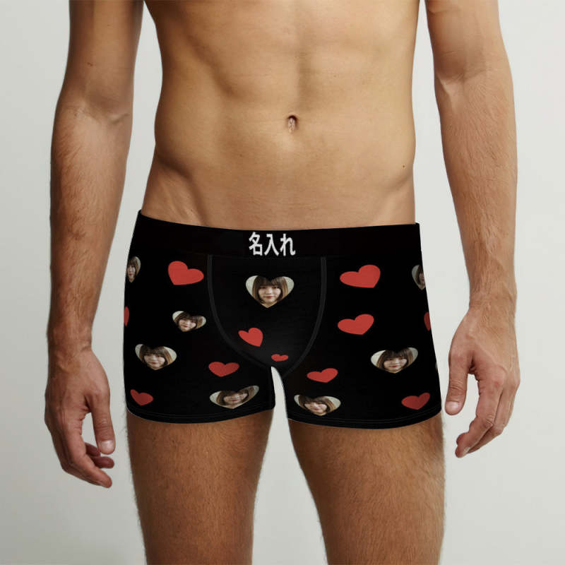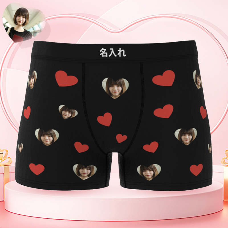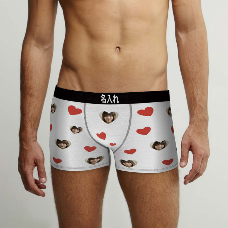 カスタムハート形フォトボクサーパンツ-写真入れ可能なオリジナル顔下着ショーツギフト-彼氏へのボクサーギフト