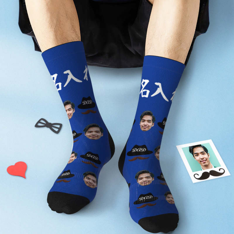 カスタムフォトソックス-写真入れ可能な父の日の靴下プレゼント-シルクハットとひげ父さんへのプレゼント