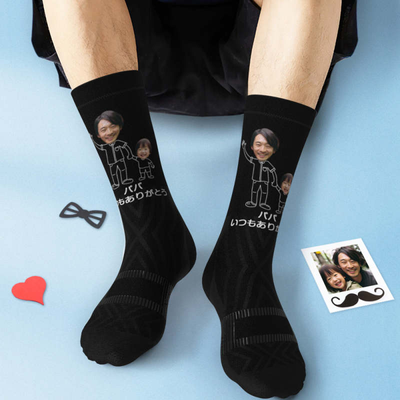カスタムフォトソックス-写真入れ可能な父の日の靴下プレゼント-パパいつもありがとう
