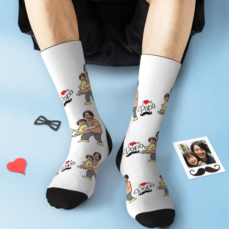 カスタムフォトソックス-父さんとの写真入れ可能な父の日の靴下プレゼント-パパ大好き