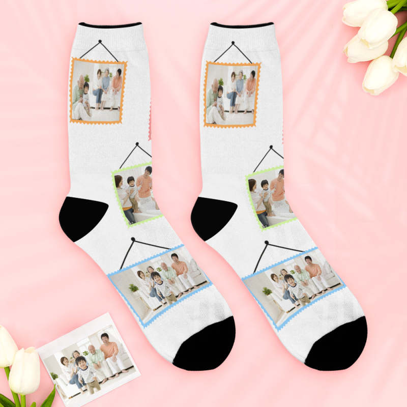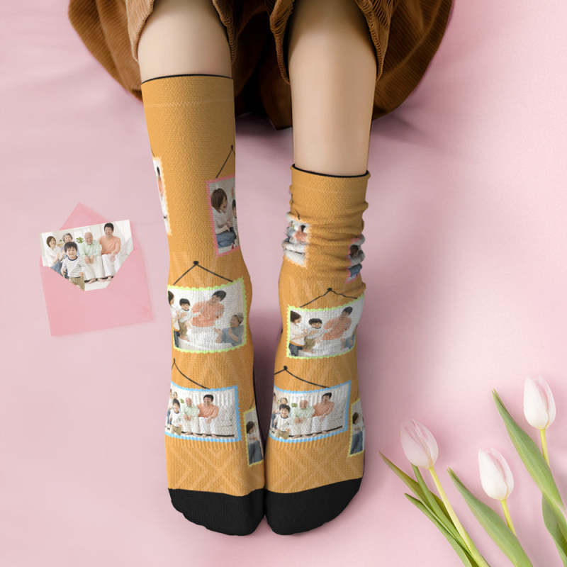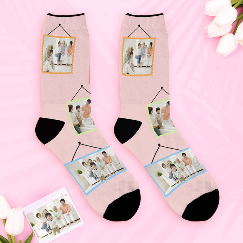 カスタムフォトソックス-写真5枚入れ可能な母の日の靴下プレゼント-壁絵の写真柄