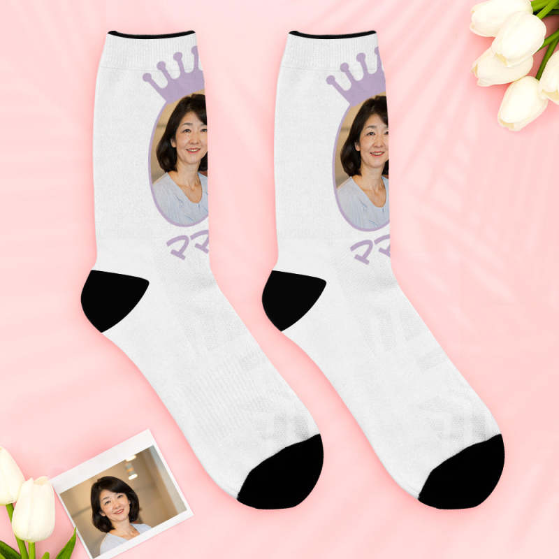 カスタムフォトソックス-写真やテキスト入れ可能な母の日の靴下プレゼント-王冠柄