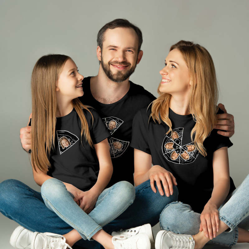 カスタムフェイスTシャツ-写真入れ可能なピザ柄の家族シャツ