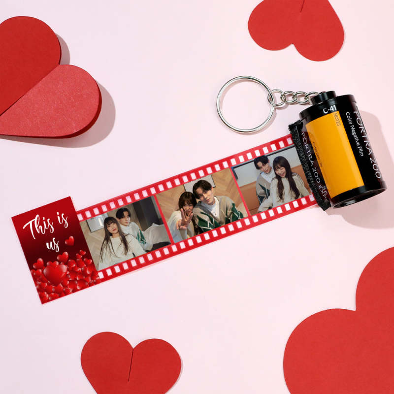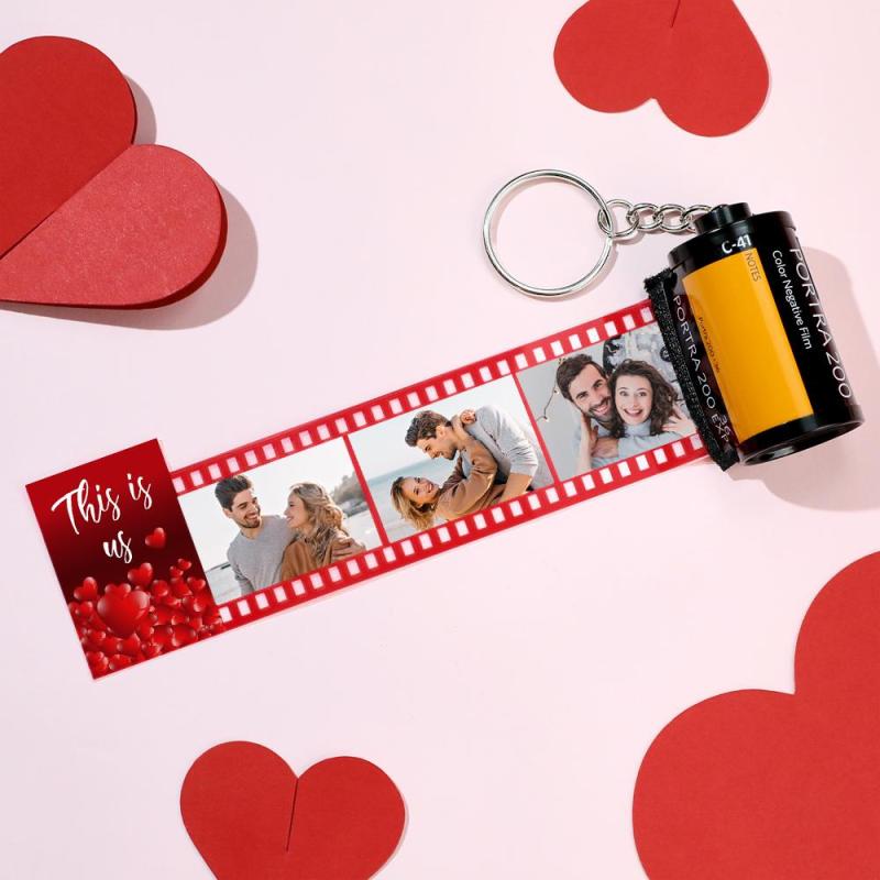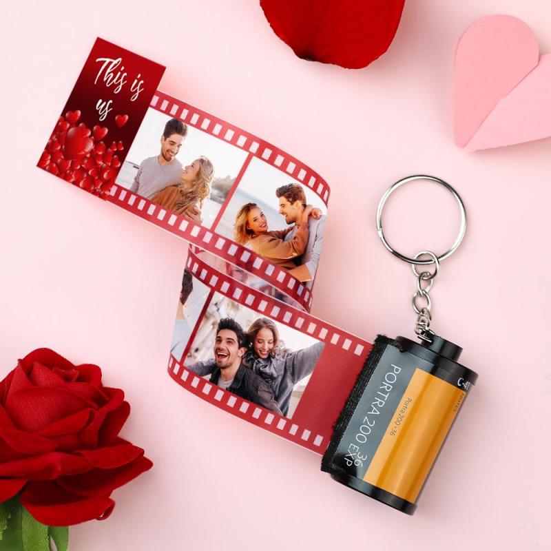 カスタム写真フィルムキーホルダー写真入れ可能な愛のカメラキーホルダーバレンタインデーのプレゼント