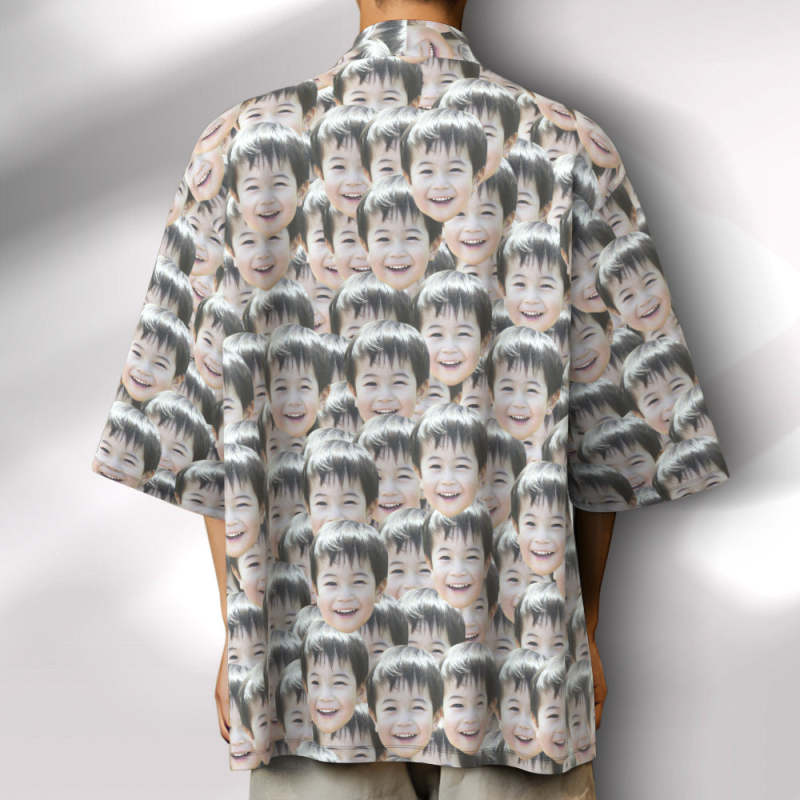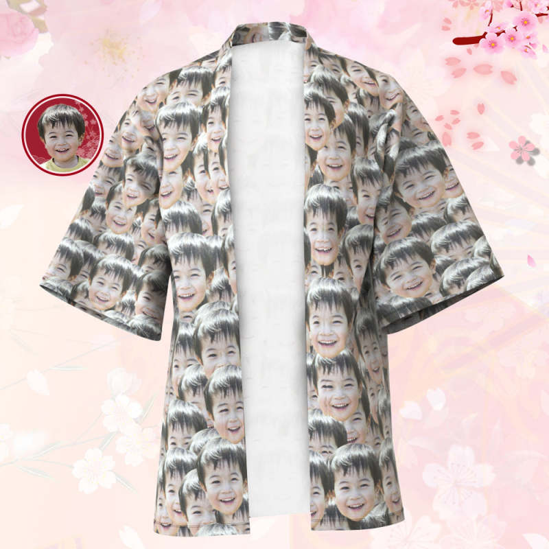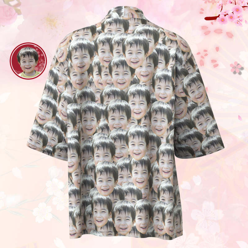 カスタムメンズフォト着物カーディガン-写真入れ可能なオリジナル甚平風羽織シャツ-マッシュフェイス