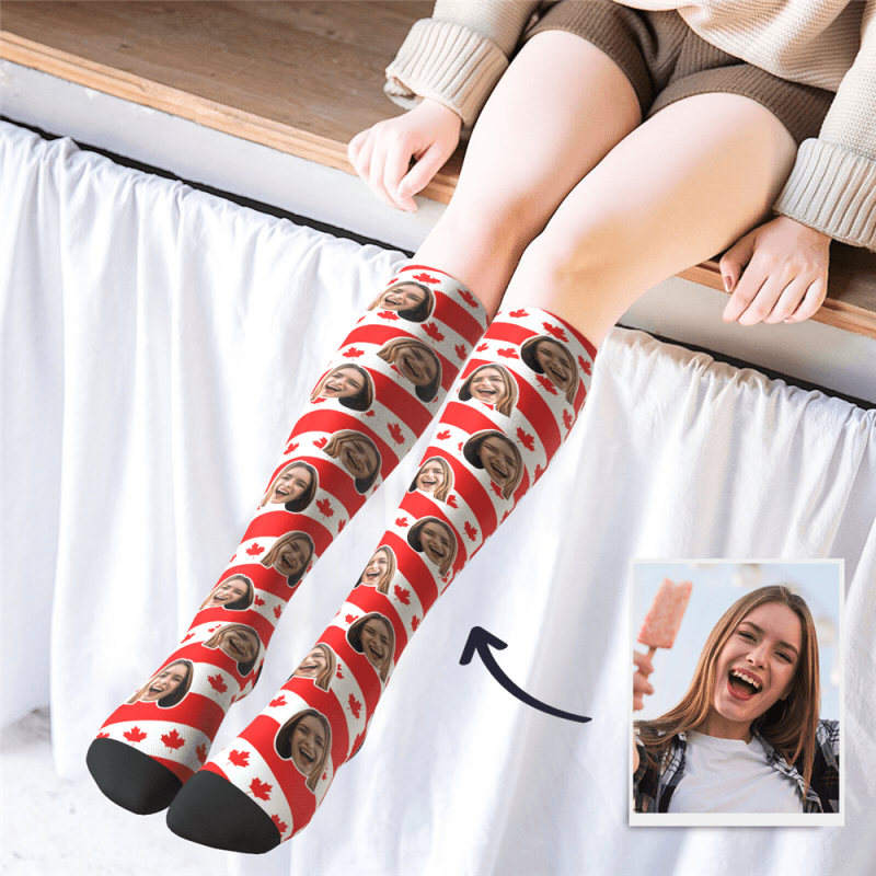 カスタムフェイスハイソックス-写真入り名入れ可能なオリジナルオーバーニソックス カナダ国旗
