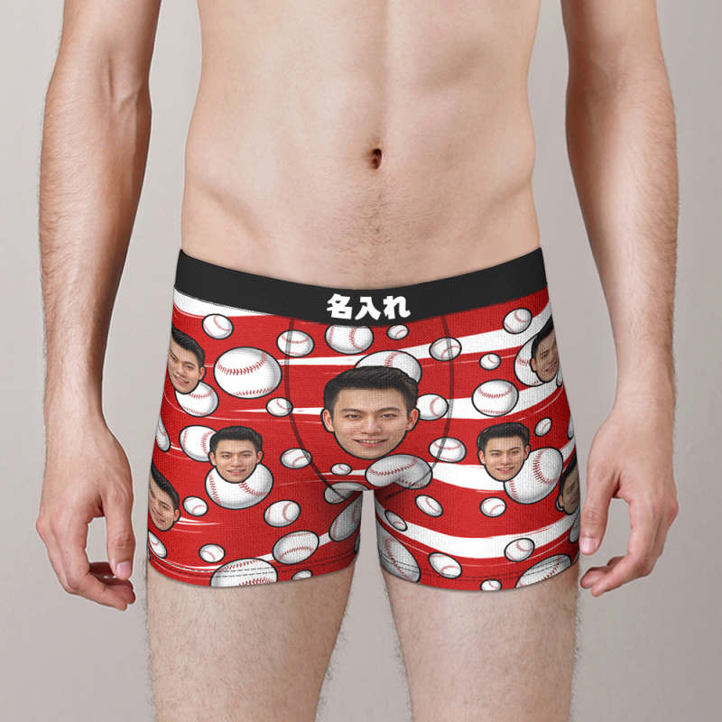 カスタム写真ボクサーパンツ-写真や名前入れ可能な野球柄の下着ショーツギフト