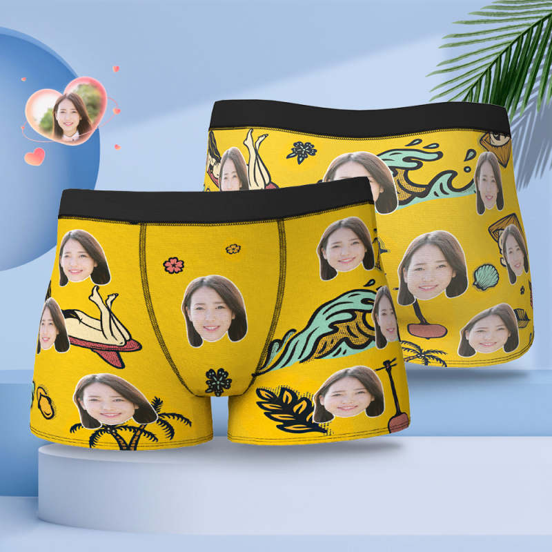 カスタム写真ボクサーパンツ-写真や名前入れ可能な夏の砂浜柄の下着ショーツギフト