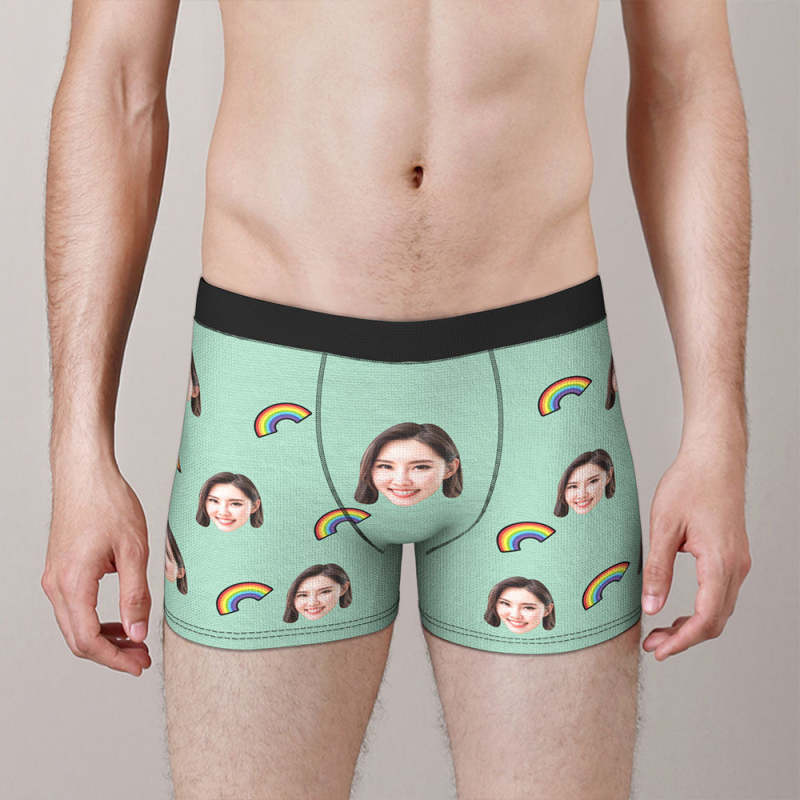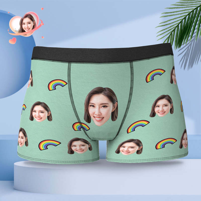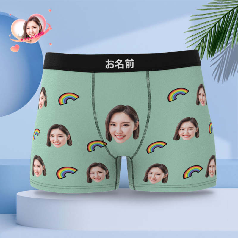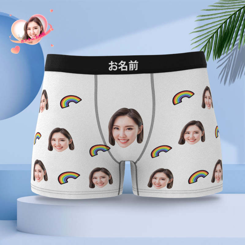 カスタム写真ボクサーパンツ-写真や名前入れ可能な虹柄の下着ショーツギフト