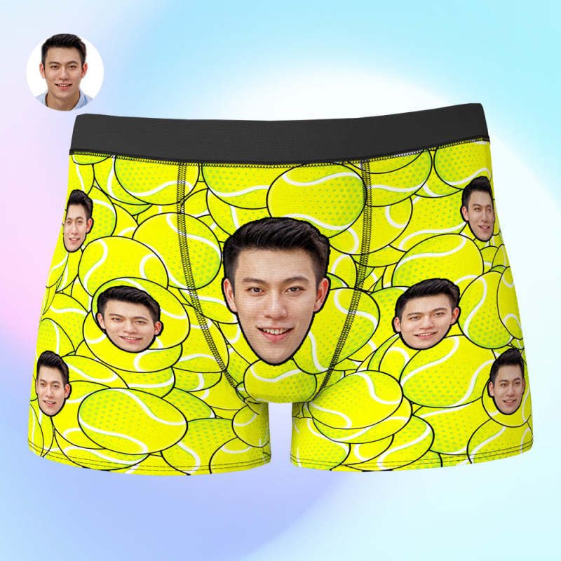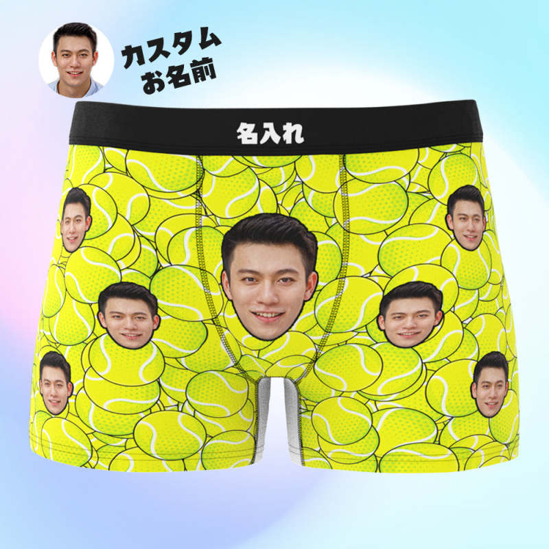 カスタム写真ボクサーパンツ-写真と名前入れ可能なテニス柄のオリジナル下着ショーツギフト