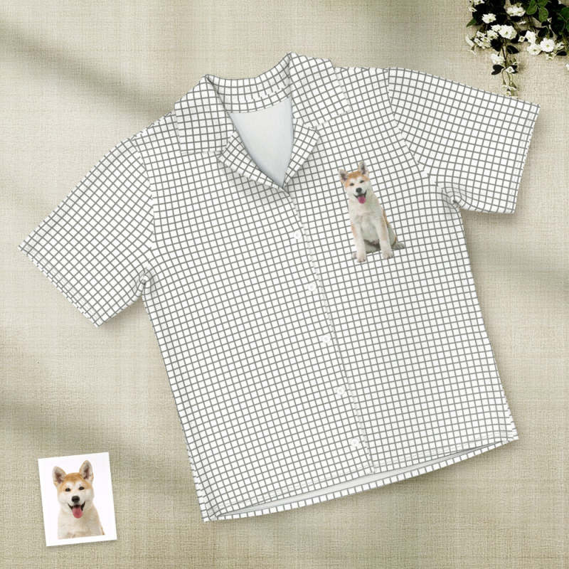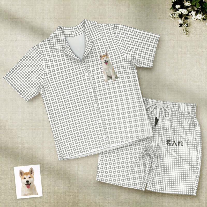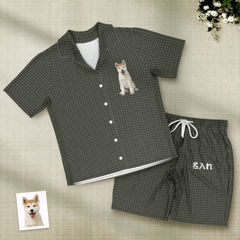 カスタムフォトパジャマ-写真や名前入れ可能なオリジナル半袖夏の涼しいパジャマギフト-格子柄