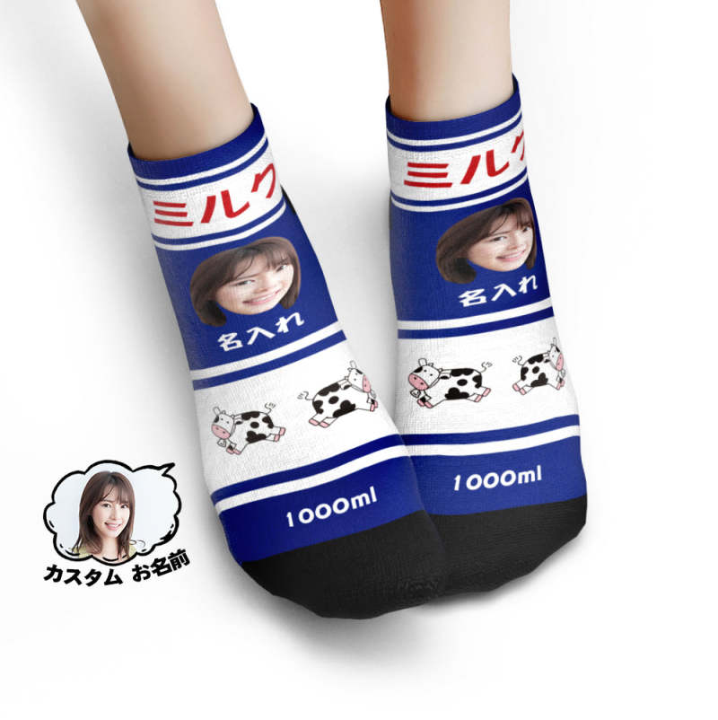 カスタムフェイスソックス-写真や名前入り可能なミルク柄の可愛いオリジナル靴下