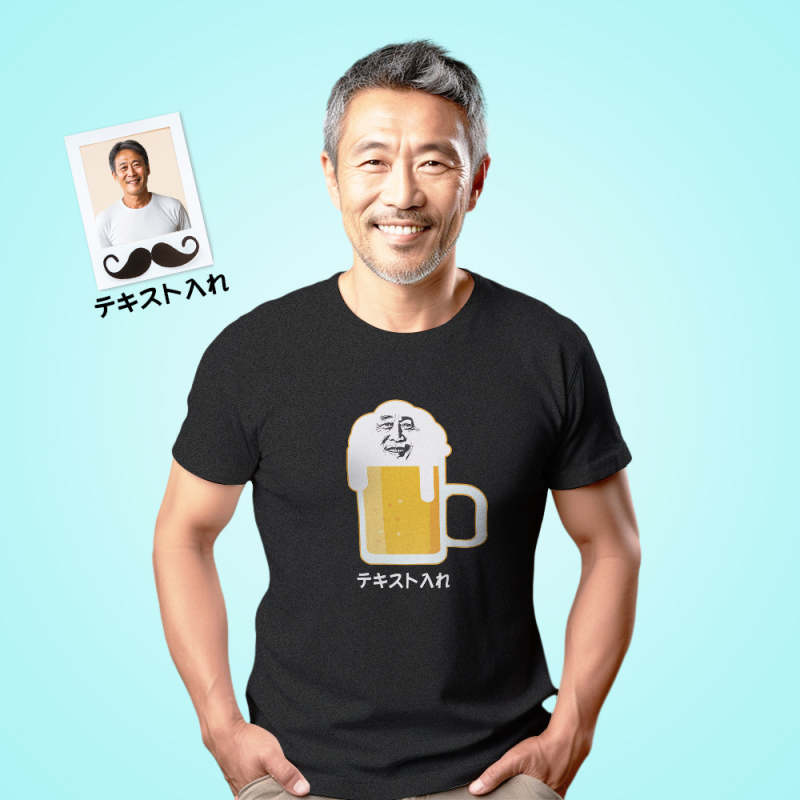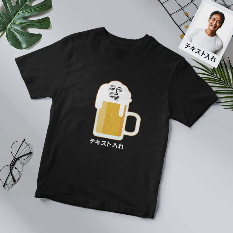 カスタムフォトTシャツ - 写真や名前入れ可能なオリジナル父の日写真T-SHIRTプレゼント - 面白いビール顔