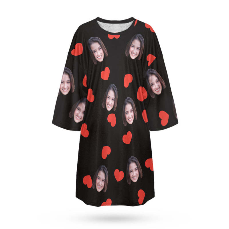 カスタム写真部屋着 - 写真入れ可能なパジャマ-オーダーメイドの女性用超特大パジャマ面しろいプレゼントハート柄