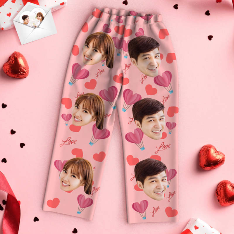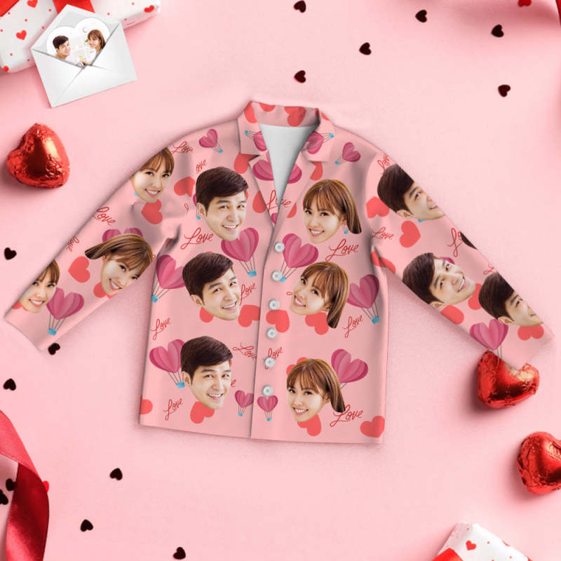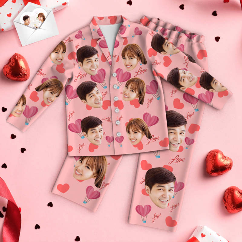 カスタムフォトパジャマ-写真入れ可能なオリジナル風船ハート柄パジャマ-カップルパジャマバレンタインギフト
