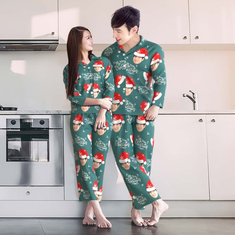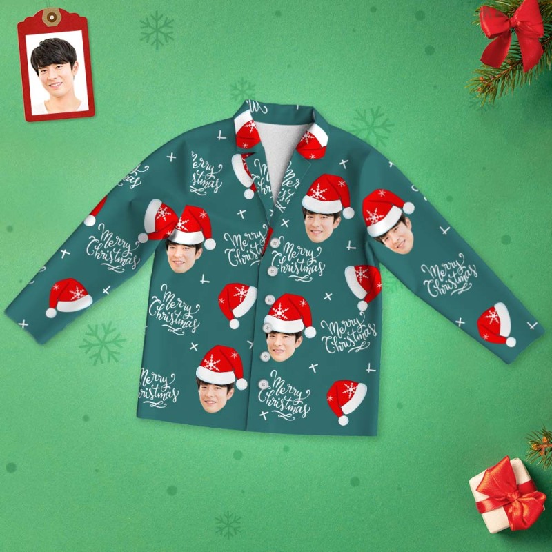 カスタムフォトパジャマ-写真入れ可能なオリジナルクリスマス雪のサンタ帽柄パジャマクリスマスギフト