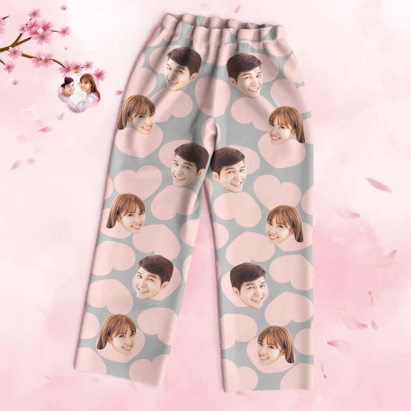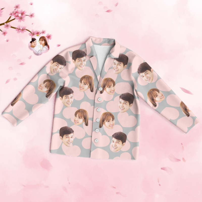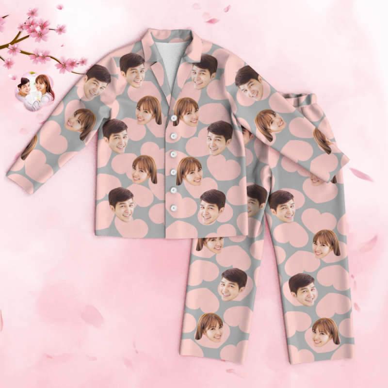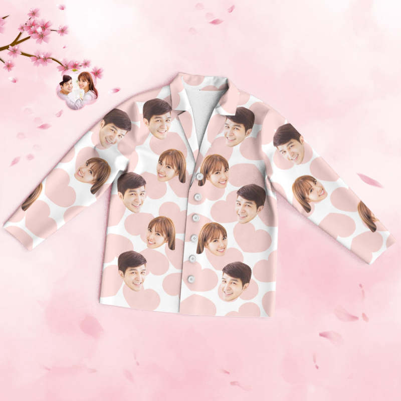 カスタムフォトパジャマ-写真入れ可能なオリジナルバレンタイン部屋着プレゼント-ハート形柄