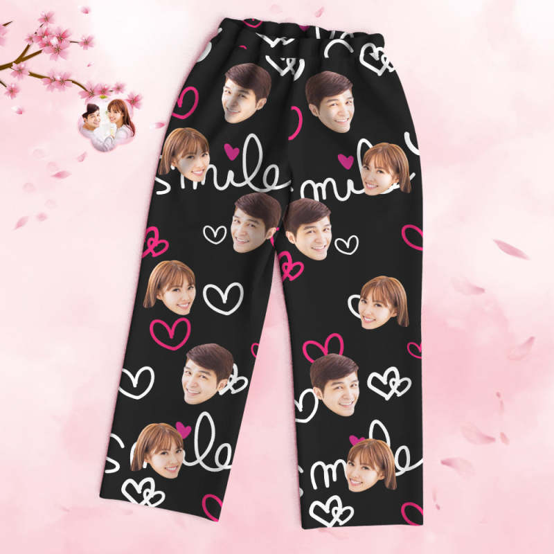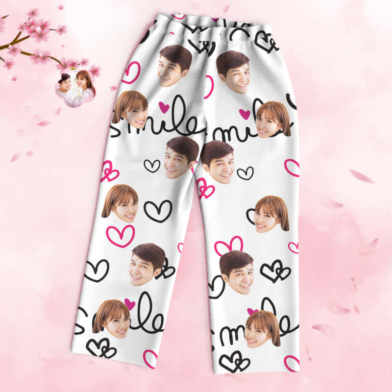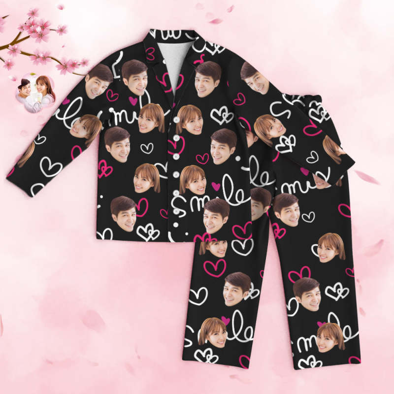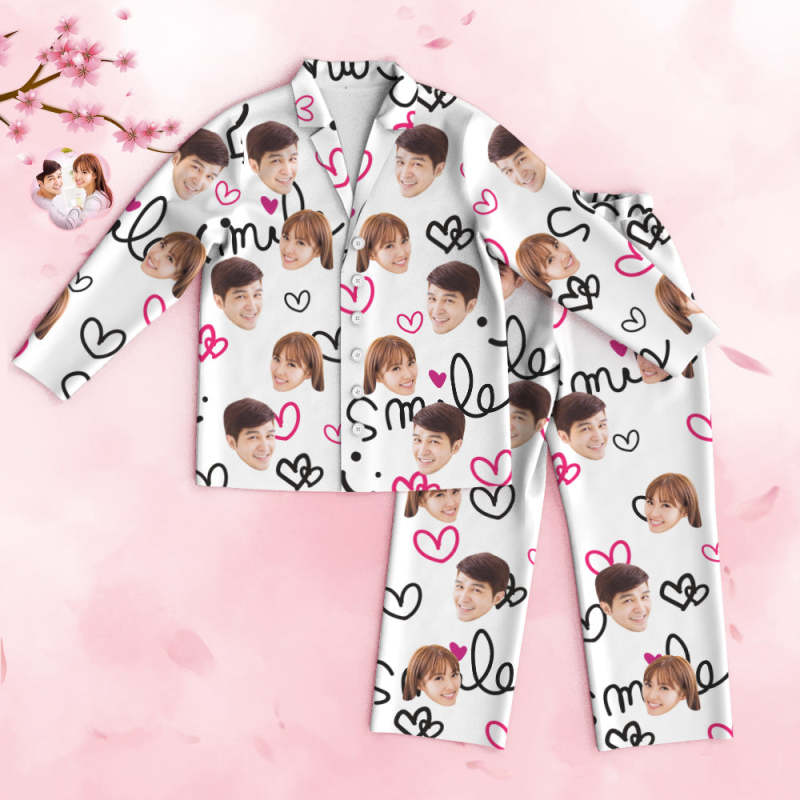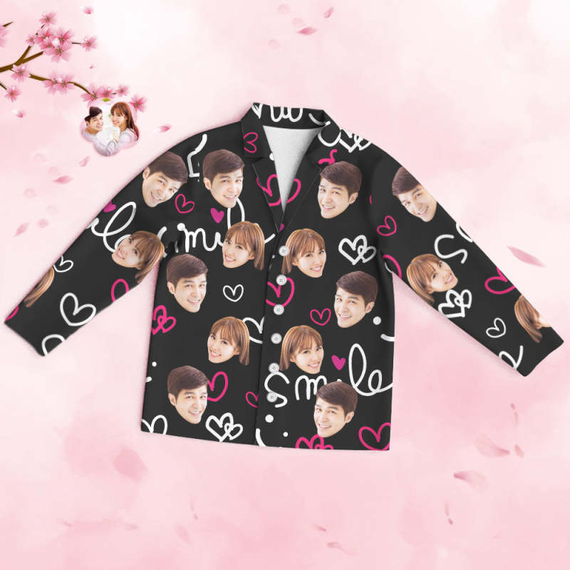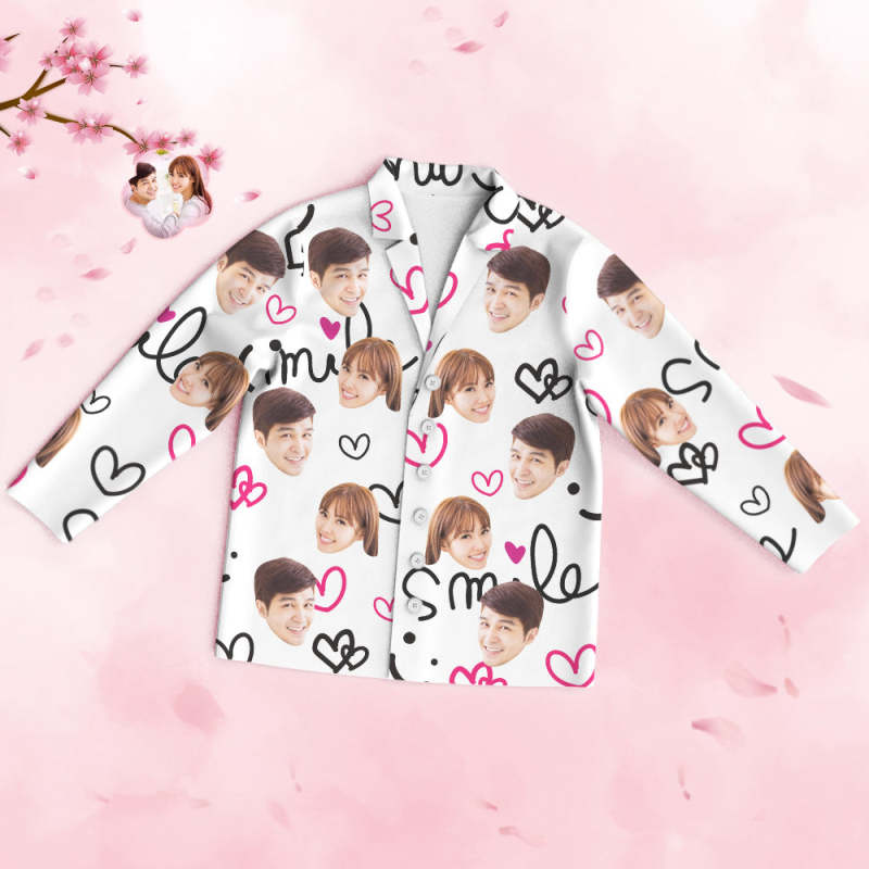 カスタムフォトパジャマ-写真入れ可能なオリジナルバレンタイン部屋着プレゼント-可愛いハート柄