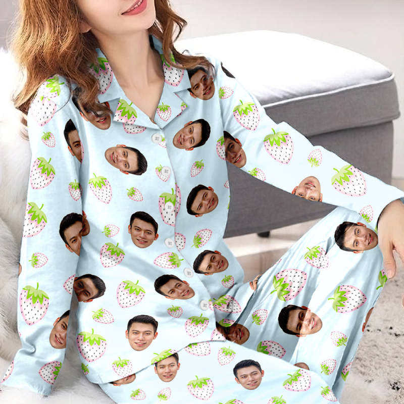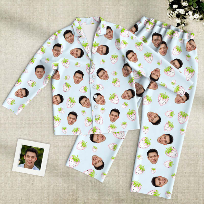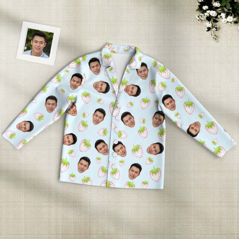 カスタムフォトパジャマ-写真入れ可能なオリジナルイチゴ柄のパジャマかわいいパジャマ