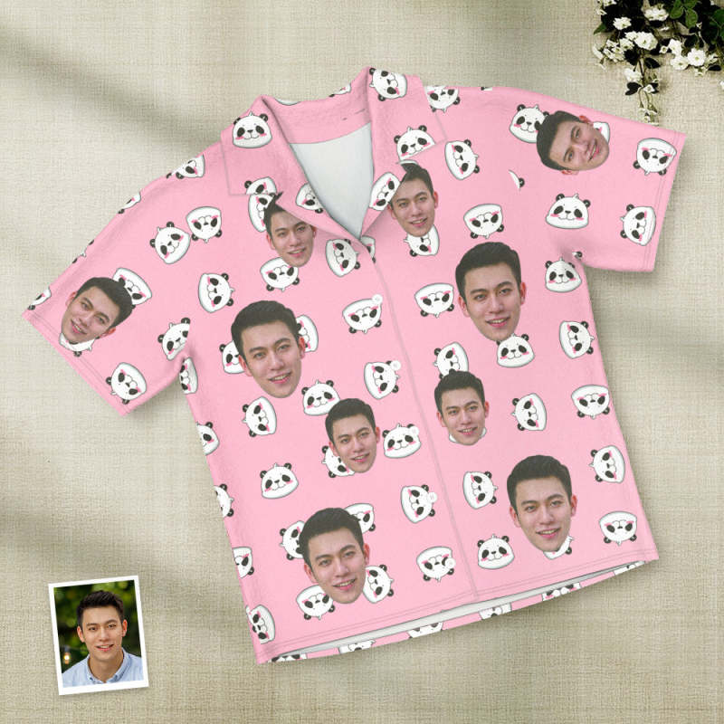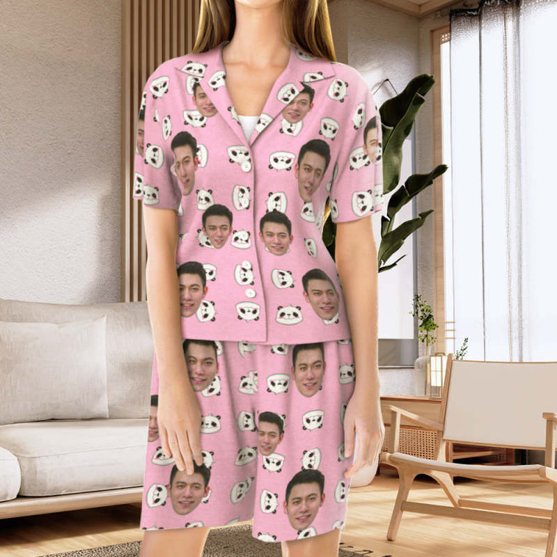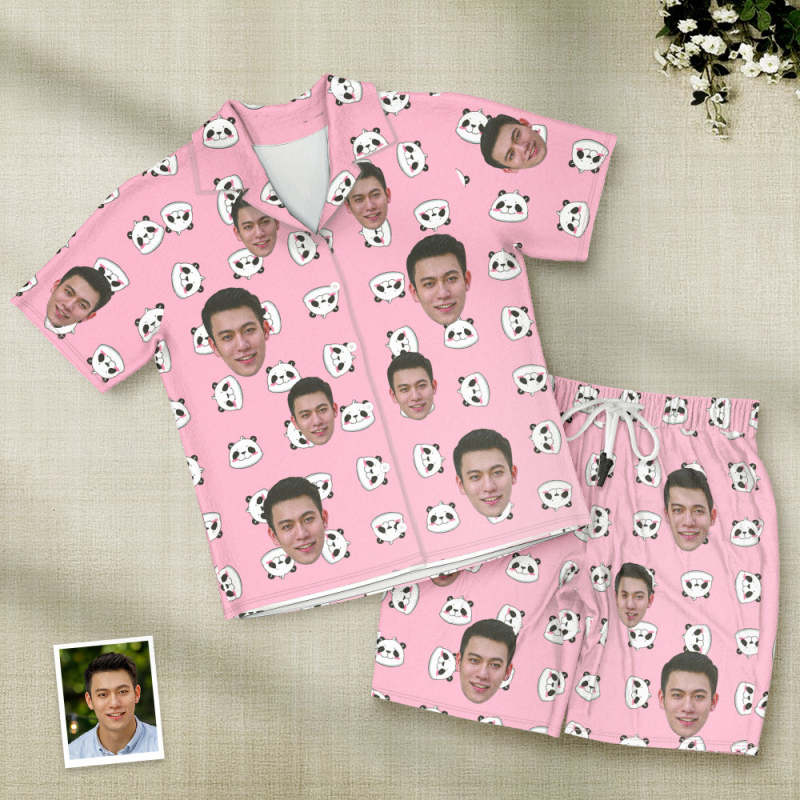 カスタムフォトパジャマ-写真入れ可能なオリジナル半袖夏の涼しいパジャマギフト-可愛いパンダ柄