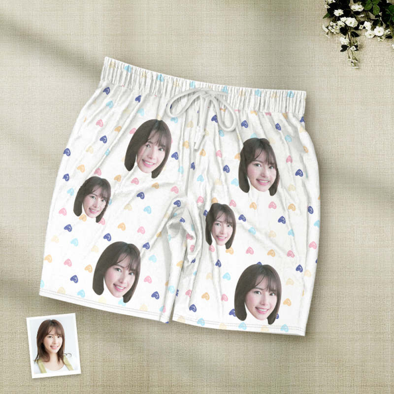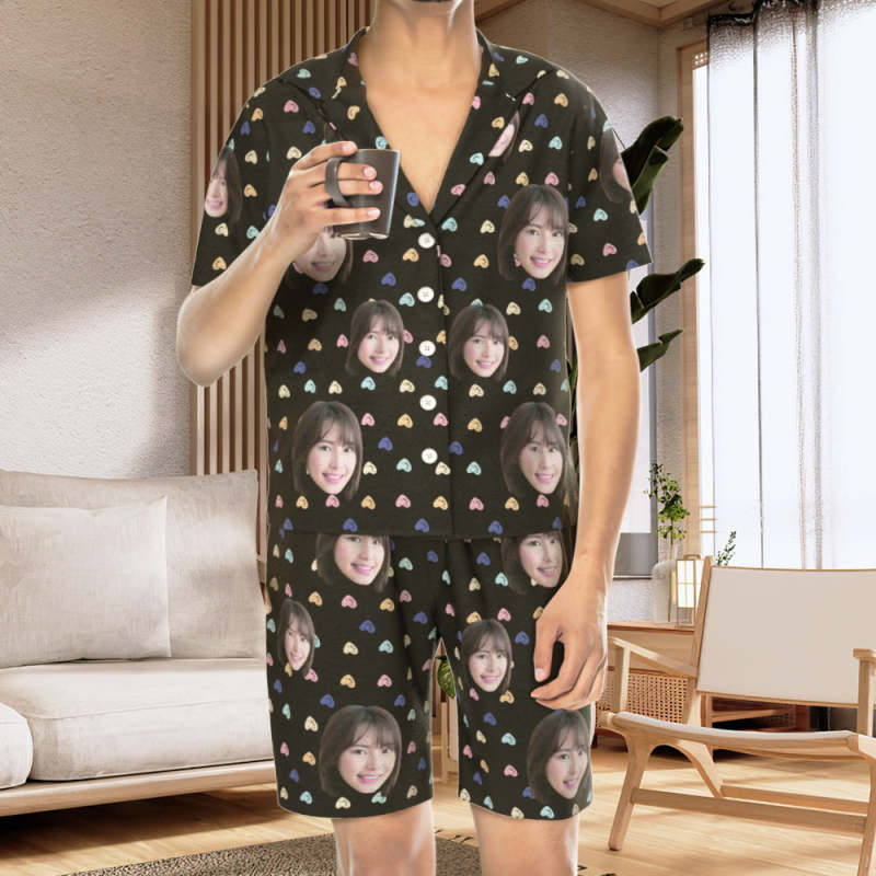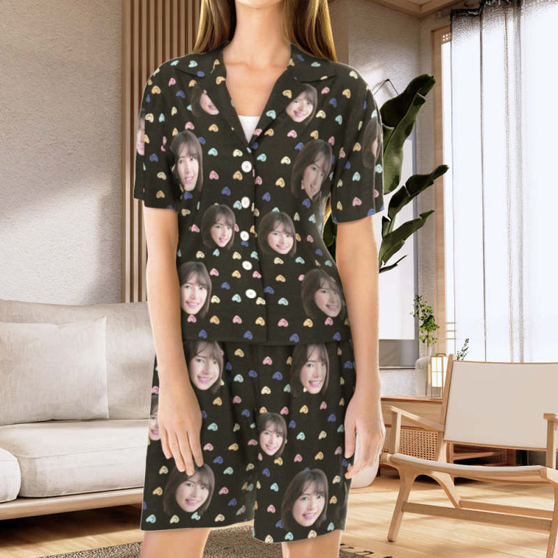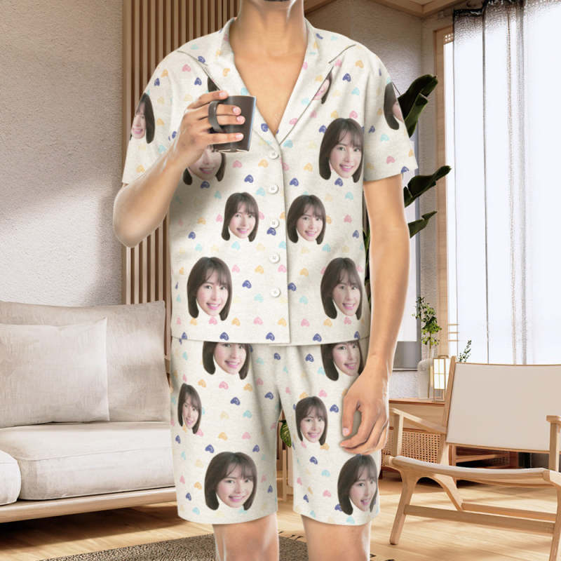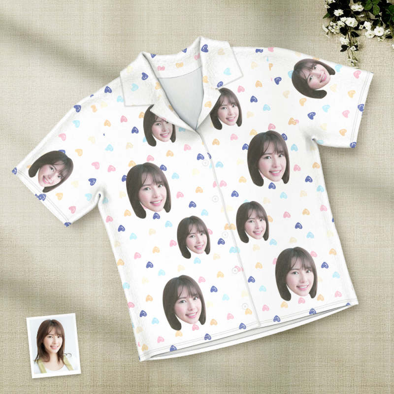 カスタムフォトパジャマ-写真入れ可能なオリジナル半袖夏の涼しいパジャマギフト-可愛いハートだらけ