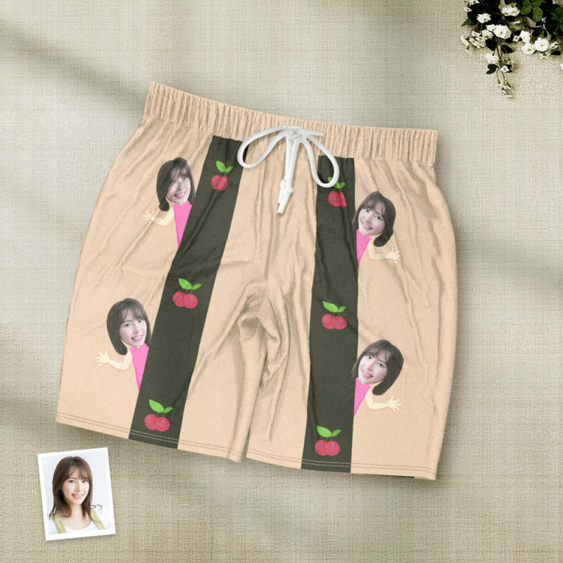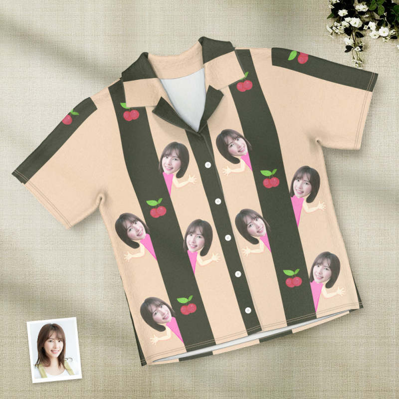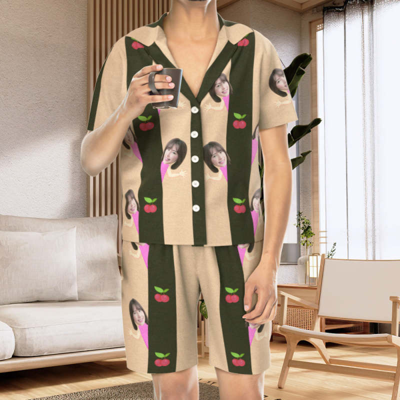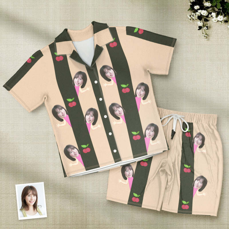 カスタムフォトパジャマ-写真入れ可能なオリジナル半袖夏の涼しいパジャマギフト-可愛いチェリー柄