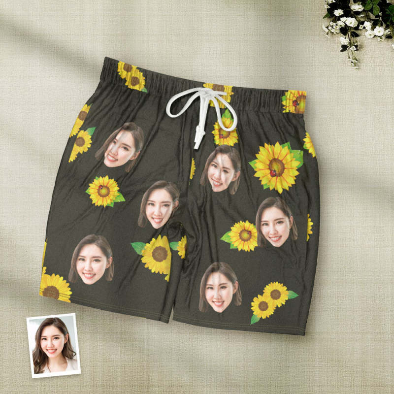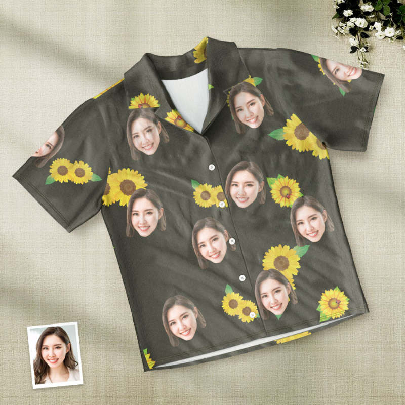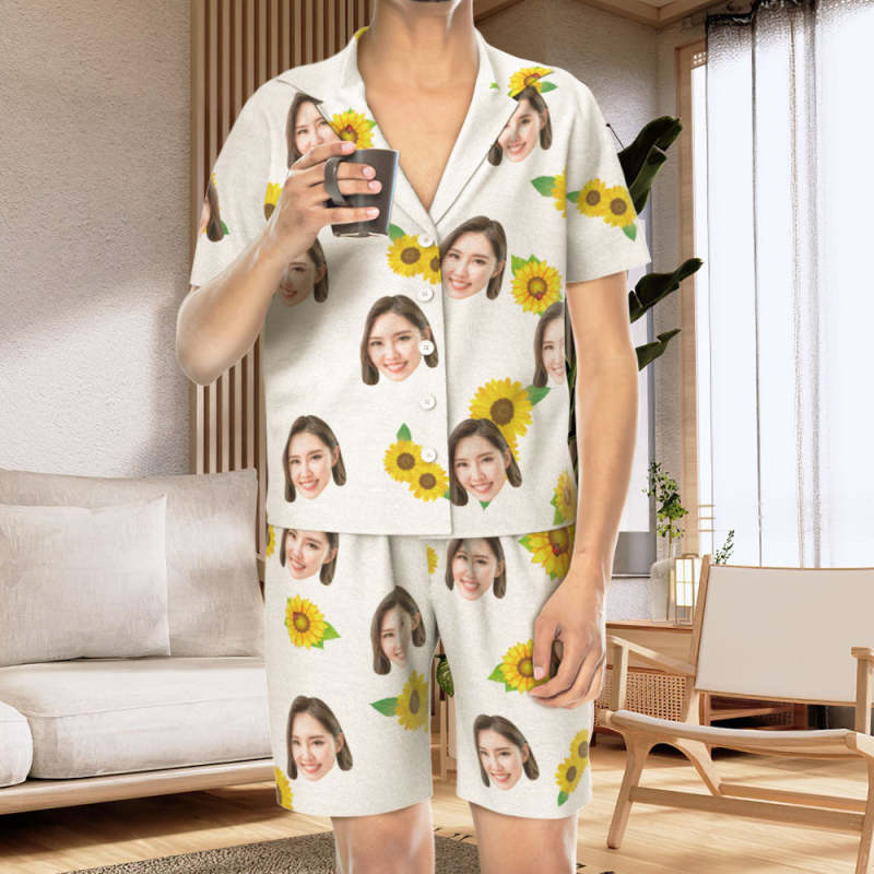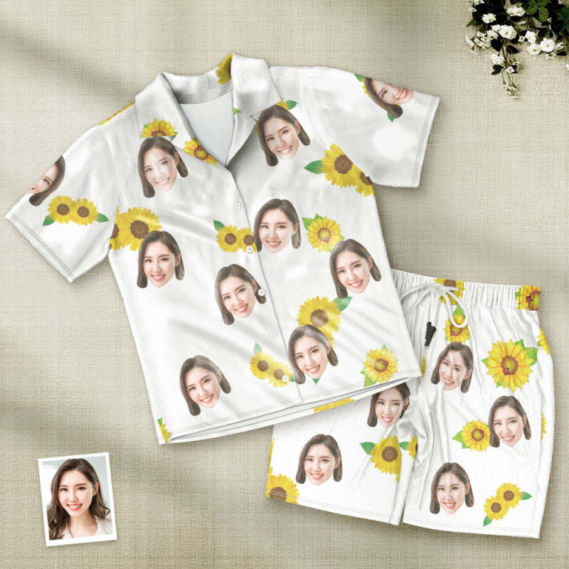 カスタムフォトパジャマ-写真入れ可能なオリジナルひまわり柄半袖パジャマ-夏の涼しいパジャマギフト