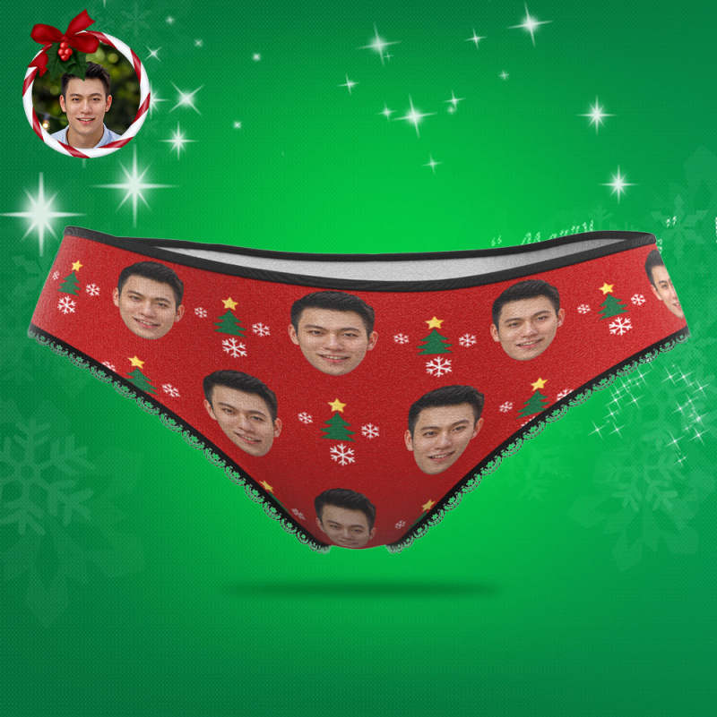 カスタムフォトパンティ-写真入れ可能なオリジナルクリスマスプレゼント女性用下着-クリスマスツリ—