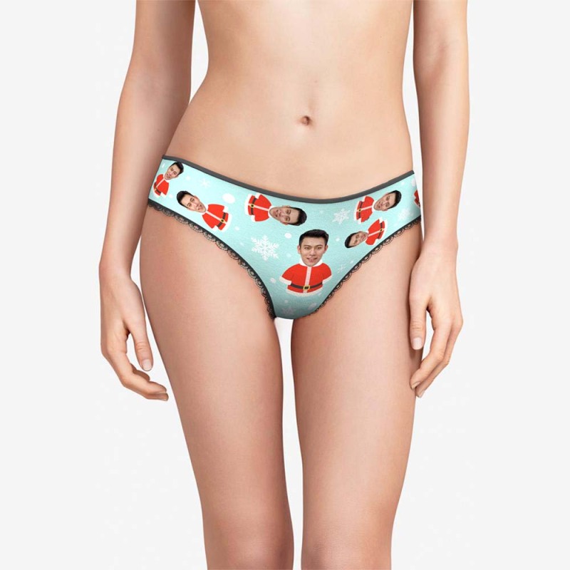 カスタムフォトパンティ-写真入れ可能なオリジナルクリスマスプレゼント女性用下着-サンタと雪の花柄