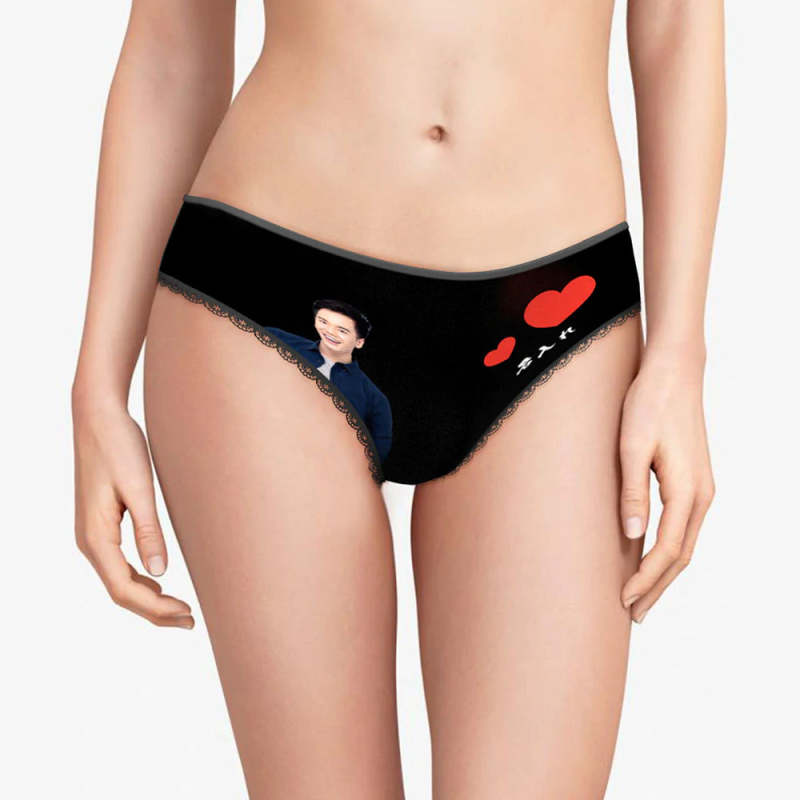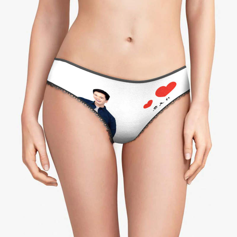 カスタムフォトパンティー-写真と名入れ可能なオリジナルバレンタインプレゼント女性用下着-ハート柄