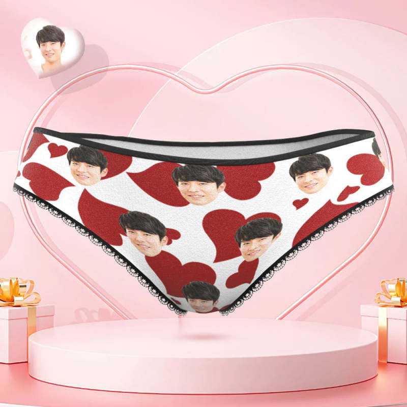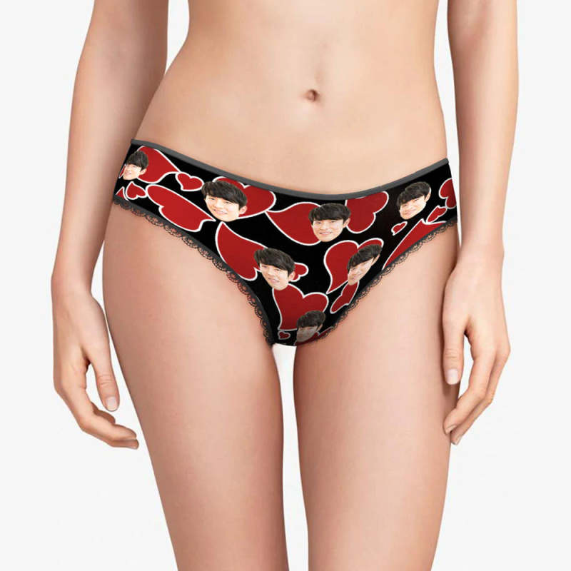 カスタムフォトパンティー-写真入れ可能なオリジナルバレンタインプレゼント女性用下着-ハートだらけ