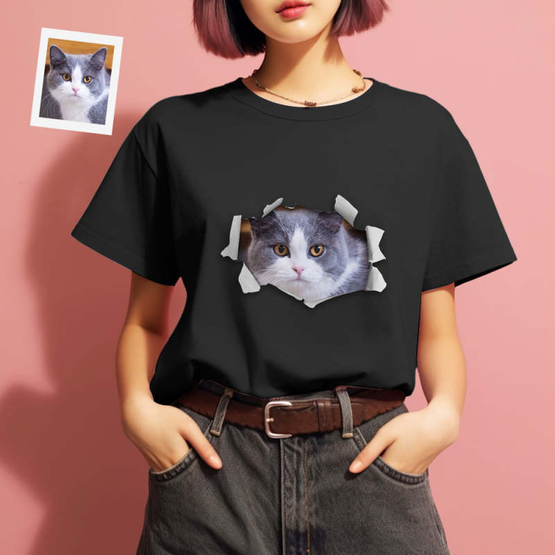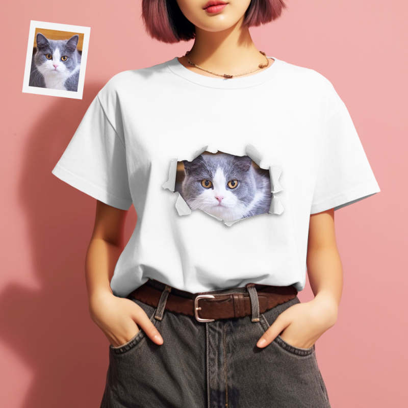 カスタム男女兼用フォトTシャツ - ペット写真入れ可能な面白い写真T-SHIRTプレゼント