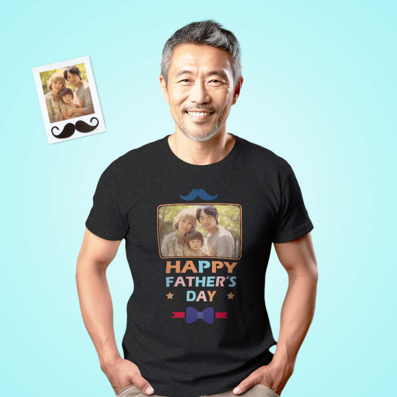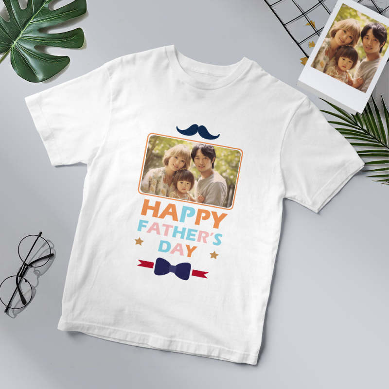 カスタムフォトTシャツ - 写真入れ可能なオリジナル父の日写真T-SHIRTプレゼント - 幸せな家族
