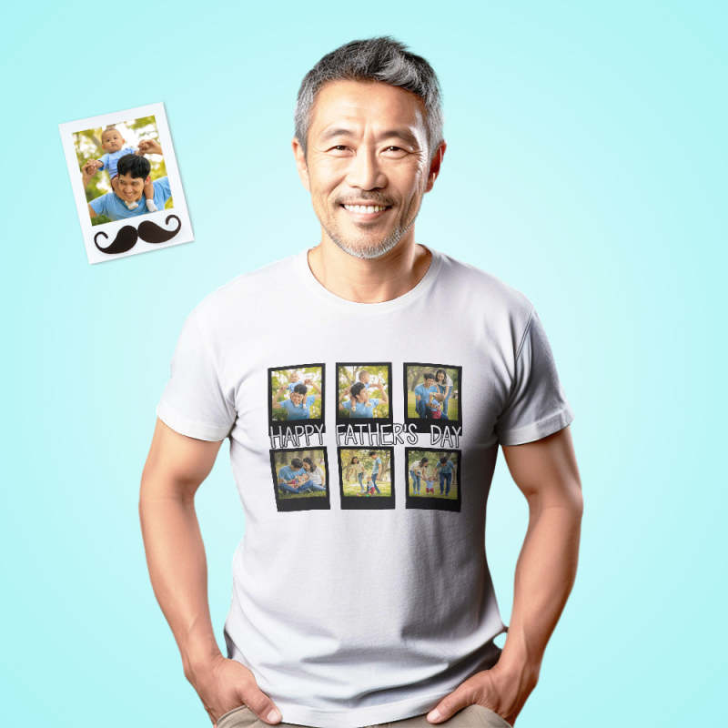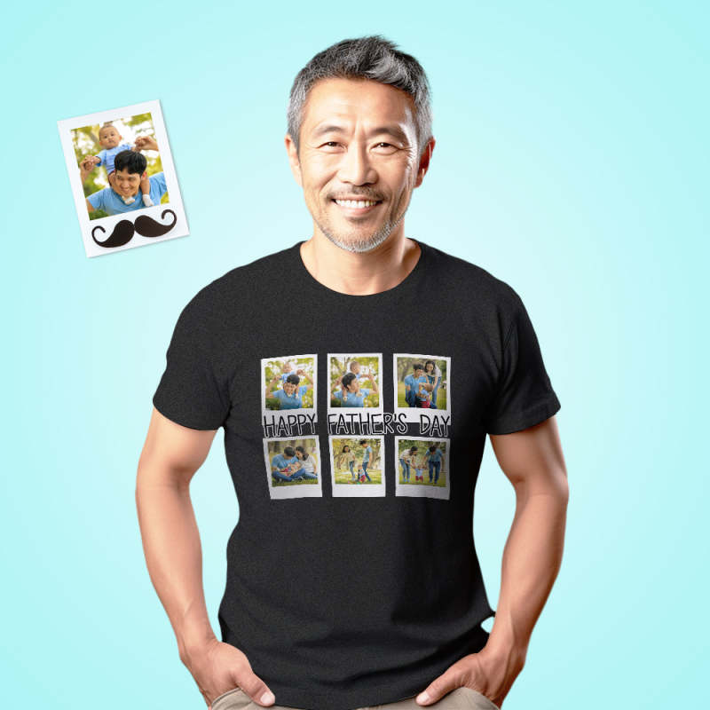 カスタムフォトTシャツ - 写真6枚入れ可能なオリジナル父の日写真T-SHIRTプレゼント