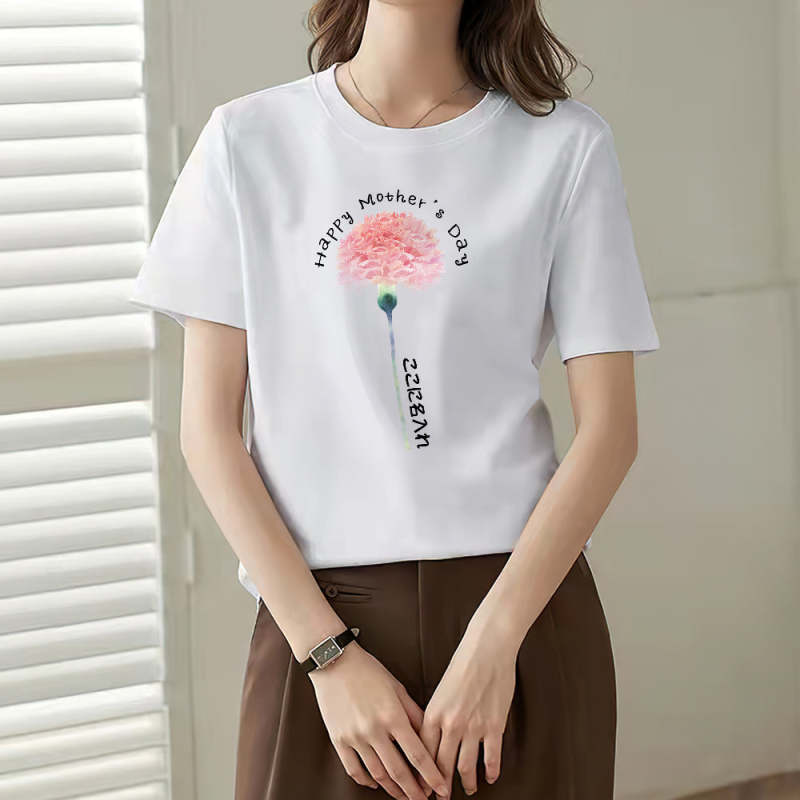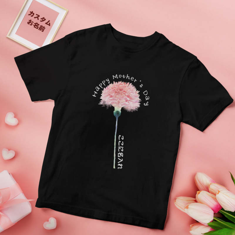 カスタム名前Tシャツ - テキスト入れ可能なT-SHIRTギフト母の日プレゼント - ピンクカーネーション