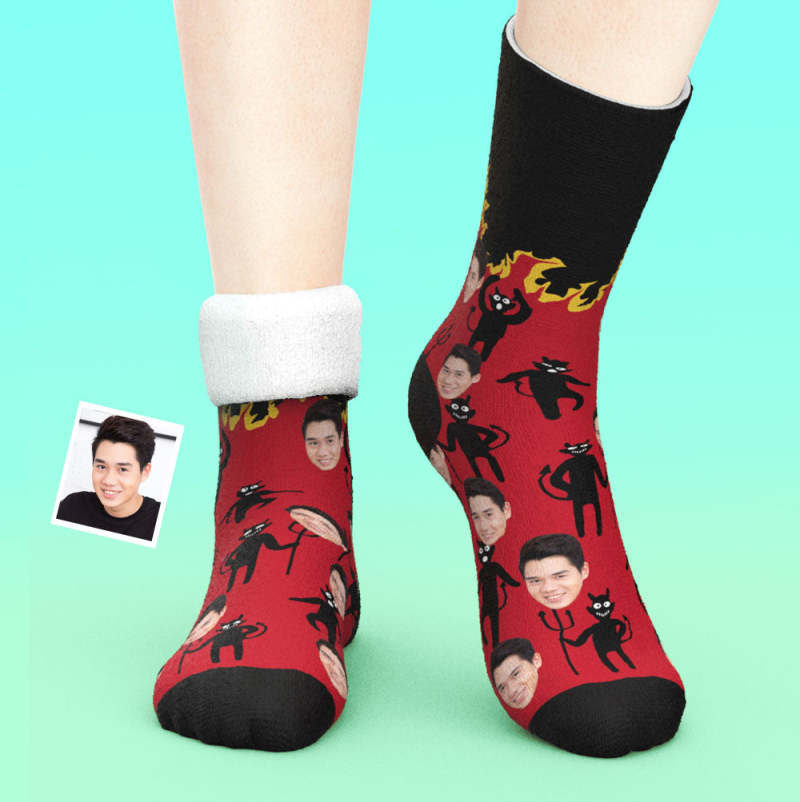 カスタム厚手フェイスソックス-写真入れ名入れ可能な面白い宇宙飛行士とロケット柄のオリジナル秋冬用暖かい靴下プレゼント